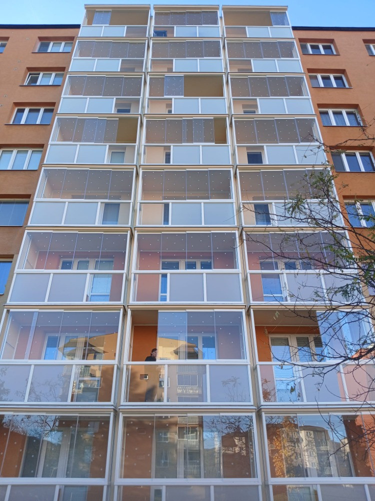 Výroba, dodání a montáž 48 ks hliníkového zábradlí, výplň sklo; zasklívací systém bezrámový Thermalux včetně boků.
